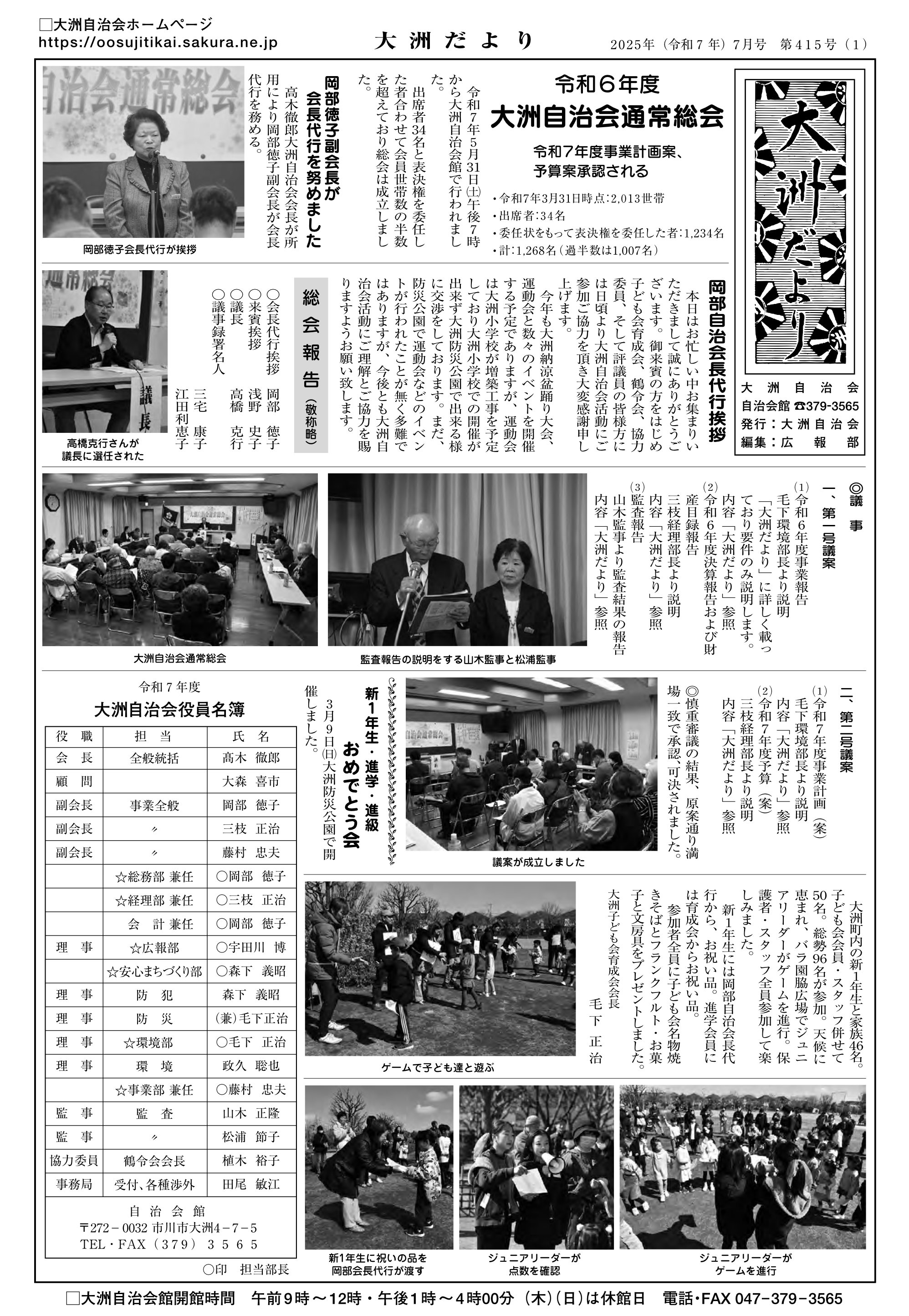尚、大洲自治会ホームページ内の大洲だよりは修正致しました。