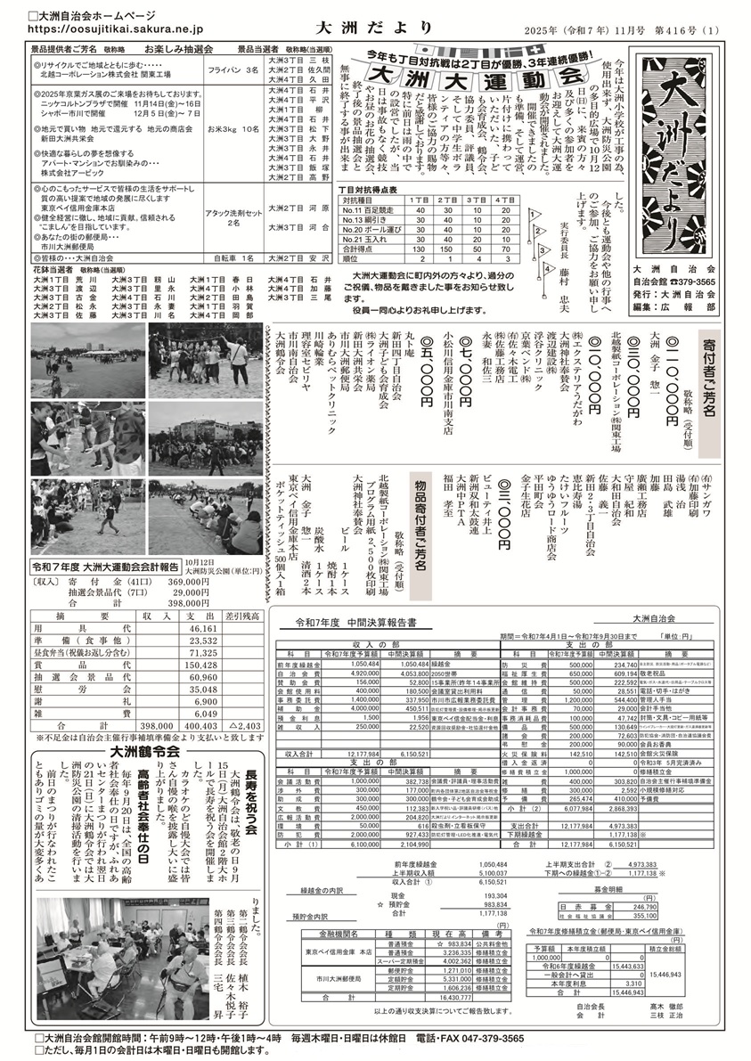 大洲大運動会・お楽しみ抽選会・ご寄付者及び会計のご報告